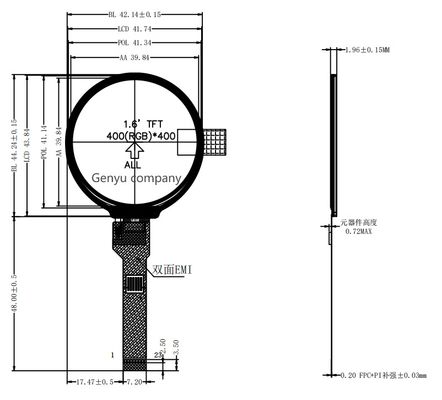 | Modül Boyutu | 42.14 ((H) × 44.24 ((V) × 1.96 ((D) mm |